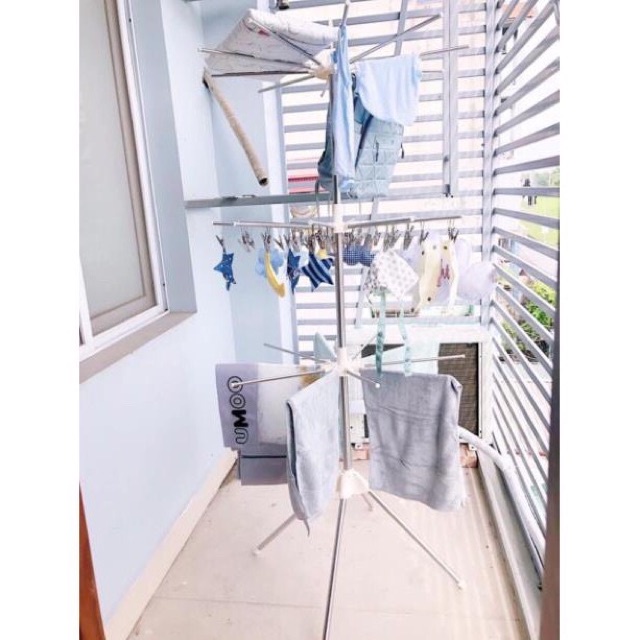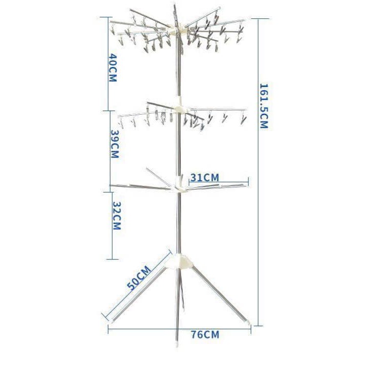 ➡ Cây phơi quần áo 3 tầng với 3 giá phơi đồ cực kì chắc chắn và tiện dụng, có thể gập gọn khi không sử dụng, móc trùm có thể tháo rời làm 1 móc treo khác
