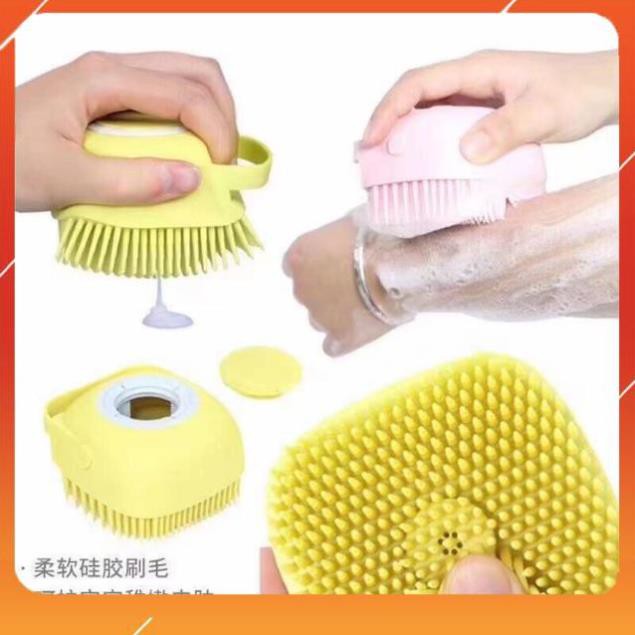 Giới thiệu [FREE SHIP] Cọ Tắm Silicon Vuông Có Ngăn Chứa Dầu Tắm Tiện Lợi