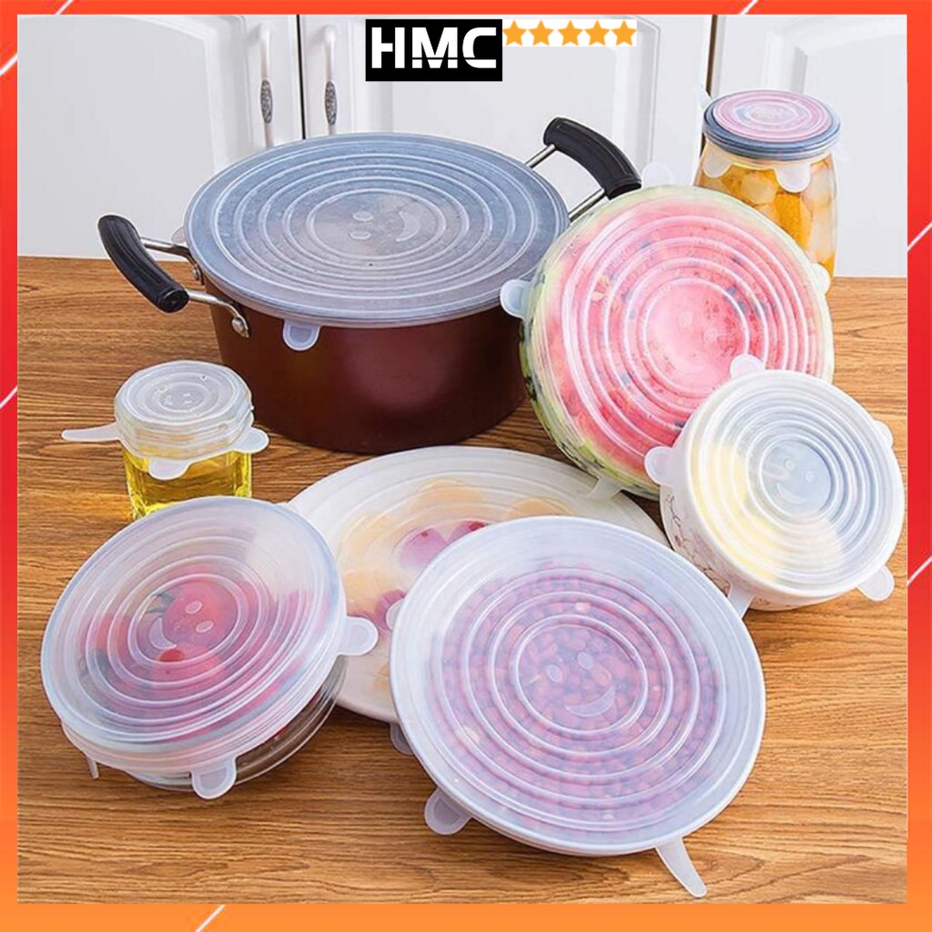 1 set gồm 6 nắp kích thước từ bé đến lớn, đảm đảo có thể đậy được từ bát nhỏ đến bát lớn, cực kín, cực khít.