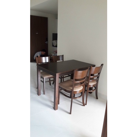 Chất liệu gỗ cao su, mặt bàn gỗ thịt nguyên chất rất bền. Mặt bàn có thể chống thấm, chống ẩm tốt nên quý khách yên tâm sử dụng làm bàn ăn, bàn cho quán xá.Kích thước 75x120x74cm