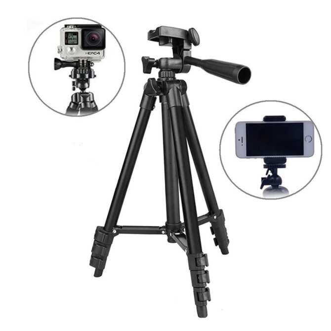 - Chân máy đa năng Tripod với khả năng điều chỉnh chiều cao một cách linh hoạt từ 35 cm đến 110 cm để bạn thoải mái chụp ảnh ở nhiều góc độ khác nhau.Sản phẩm làm bằng inox và nhựa cao cấp với kiểu dáng hiện đại và nhỏ gọn, có thể dễ dàng mang theo khi đi du lịch, dã ngoại... Trục giữa linh hoạt có thể xoay lên, xuống và xoay tròn 360 độ giúp bạn dễ dàng bắt được những góc hình ưng ý nhất. Đặc biệt bạn được tặng kèm 1 đầu cố định điện thoại và máy ảnh giúp cho bạn có thể dễ dàng có được những bức ảnh tuyệt đẹp cùng gia đình, bạn bè...