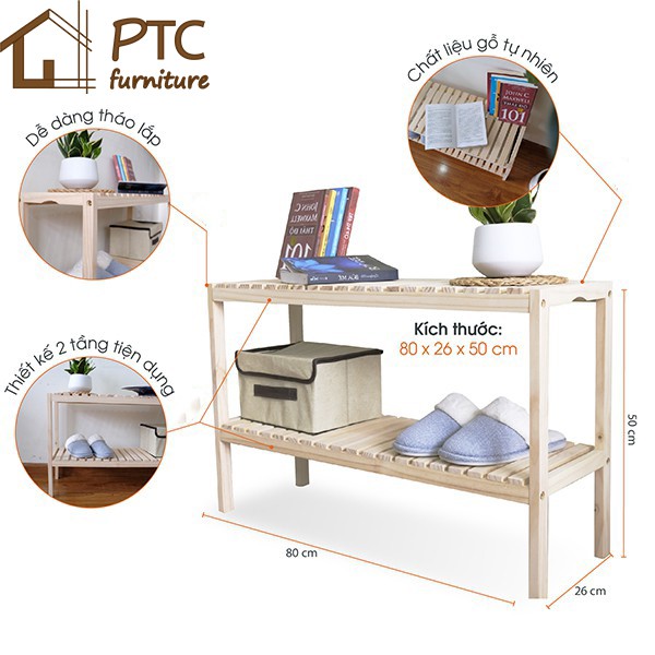 Giới thiệu [ FREE SHIP ] Kệ Giày, Kệ Đa Năng 2 Tầng Nhiều Kích Thước Gỗ Thông PTC Furniture Nội Thất Lắp Ráp