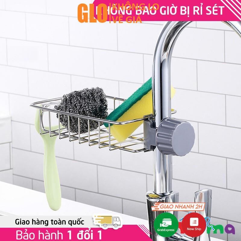 Giá treo inox tiện dụng, chắc chắn, dễ lắp đặt, kệ để đồ đa năng gắn vòi nước lavabo, giá treo vòi nước đựng lưới rửa bát, bàn chải, cọ xoong_HK112