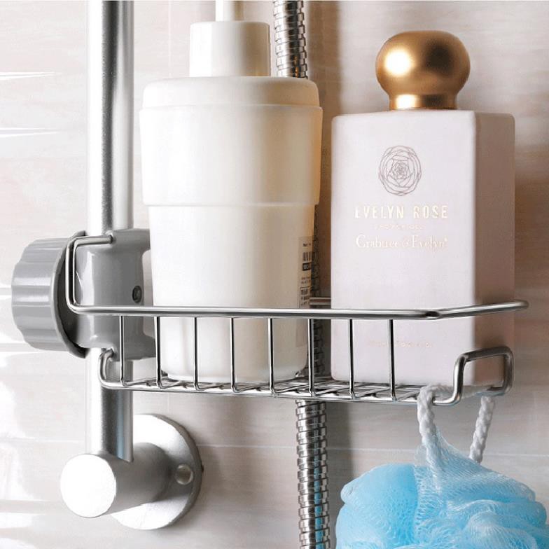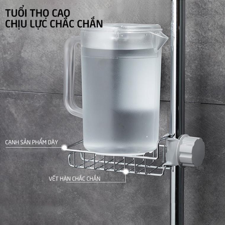 - Kệ inox dày 3,79mm cùng nút nhựa ABS chắc chắn, khóa chặt không dễ rớt, chịu lực đến 3kg.