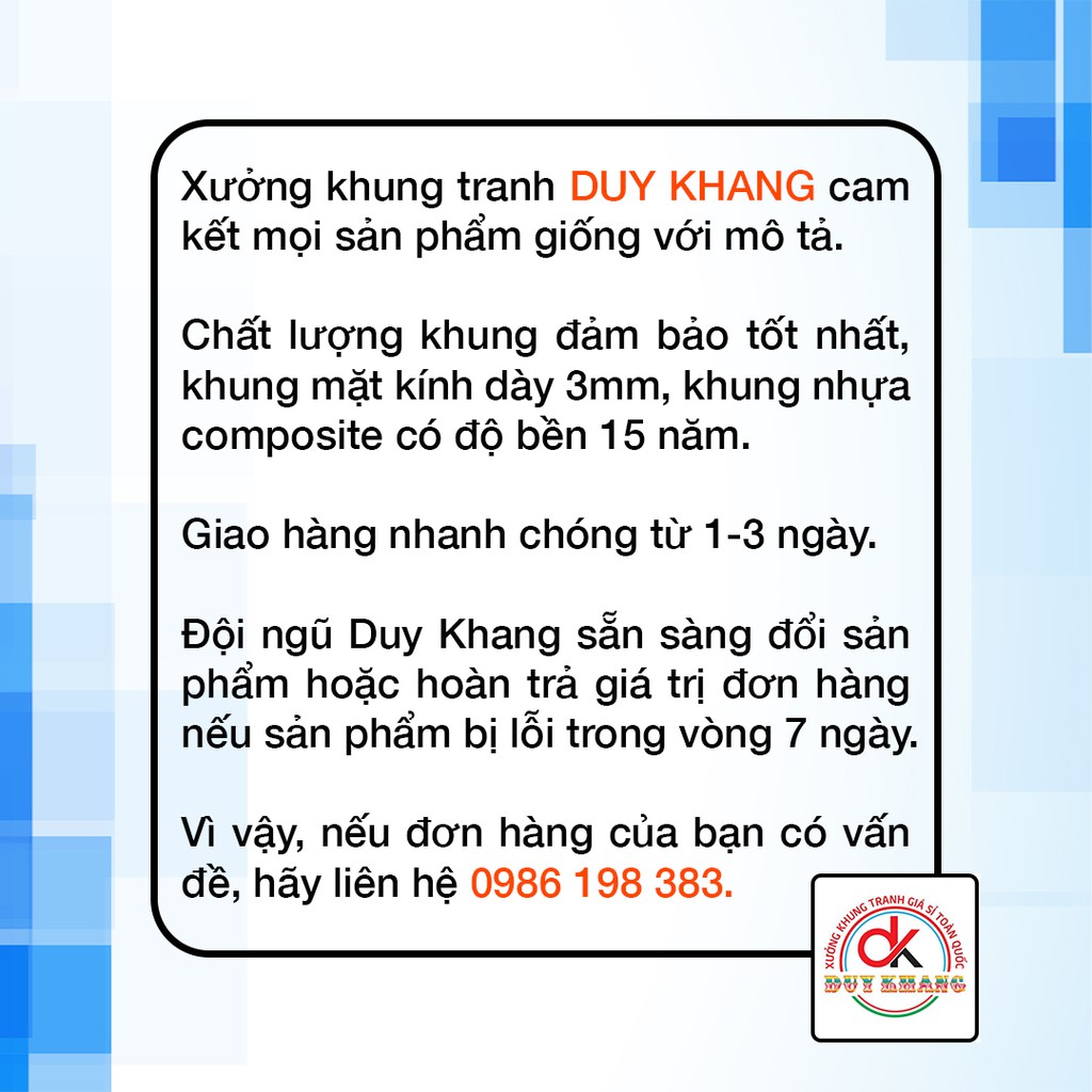 - Sản phẩm Khung hình B6 Duy Khang 13x18cm giống mô tả. Do điều kiện ánh sáng và chụp khác nhau, màu sắc có sản phẩm có thể chênh lệch 3-5% so với hình ảnh thực tế.