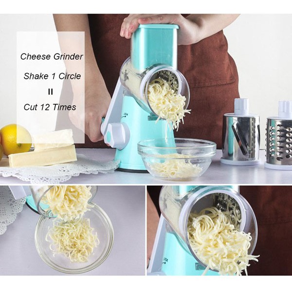 Máy bào sợi cắt lát củ quả bằng tay nhanh gấp 12 lần so với bào tay thông thường. Với 3 trống cắt: 1 cắt lát + 1 bào sợi nhỏ + 1 bào sợi to. Mỗi 1 vòng quay cho thành phẩm tương đương 12 lần bào bằng tay.Các mẹ có thể dùng máy để cắt lát/bào sợi rất nhiều loại củ quả khác nhau: dưa leo, cà rốt, su su, bí đao, bí ngòi, đu đủ… Cũng có thể dùng để bào phô mai, socola, bánh cookie… Nghiền các loại hạt mềm: đậu phộng, đậu đỏ, hạt điều…