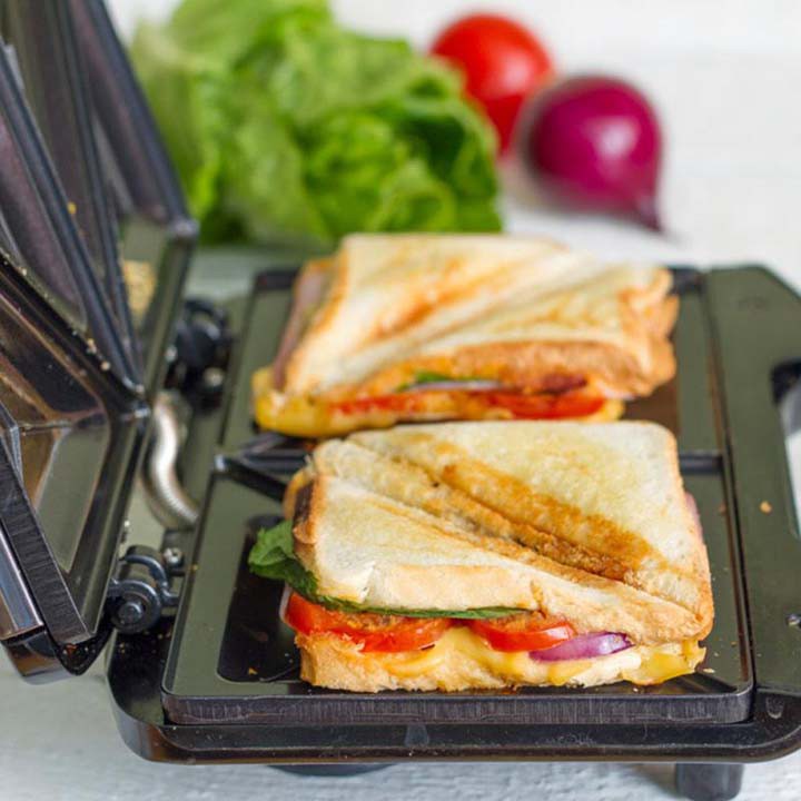 - Máy được thiết kế để nướng những loại bánh có dạng lát mỏng như sandwich hoặc các món bánh tự làm. Bạn có thể dùng để chế biến những món bánh thơm ngon, giòn tan cho cả gia đình.