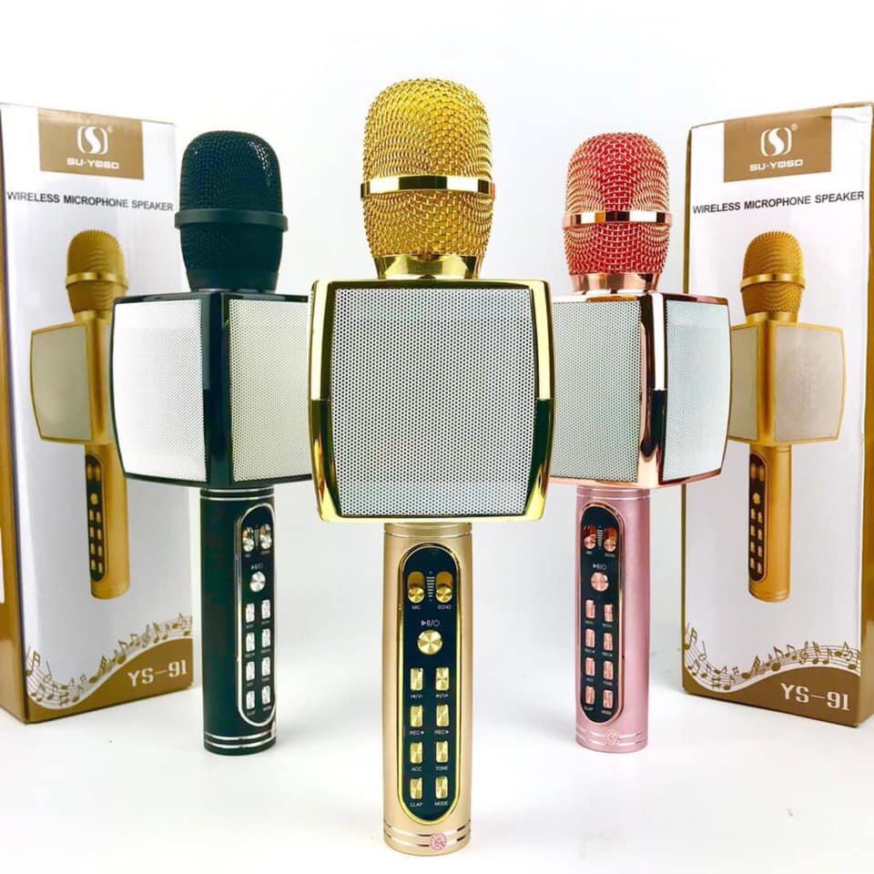 - Micro YS91- Mic Không Dây Karaoke Đa Năng Kiêm Loa Bluetooth áp dụng công nghệ lọc loại bỏ bớt tạp âm bên ngoài vô cùng hiện đại, khả năng bắt và hút âm của mic rất tốt, âm thanh to, thanh, trung thực và có độ ấm cao Micro Karaoke Bluetooth YS91 khắc phục được nhược điểm là tiếng loa bị rè, vỡ âm hay loa đột nhiên rú lên khi vô tình ma sát vào vòm mic