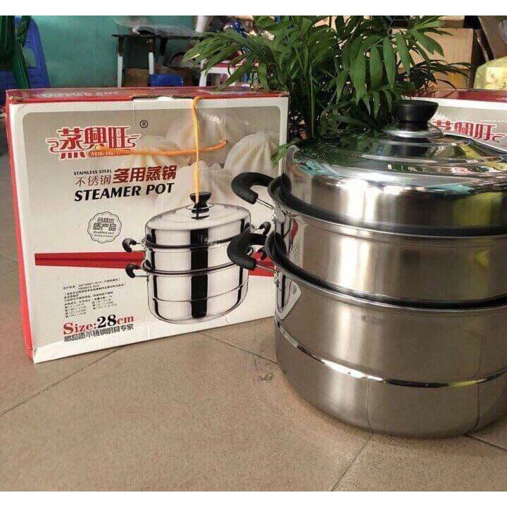 [Free Ship] Nồi Hấp inox 3 Tầng Cỡ Lớn-Bộ nồi hấp inox Steamer Size 28cm Đa Năng Cao Cấp Dùng Cho Mọi Loại Bếp