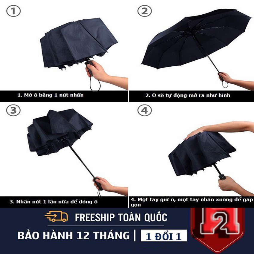 •Đây là ô (dù) tự động đóng mở bằng nút bấm, vì vậy sau khi sử dụng các bạn bấm nút để thu tán