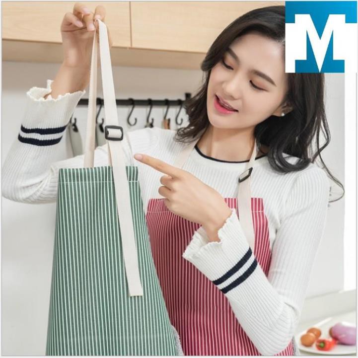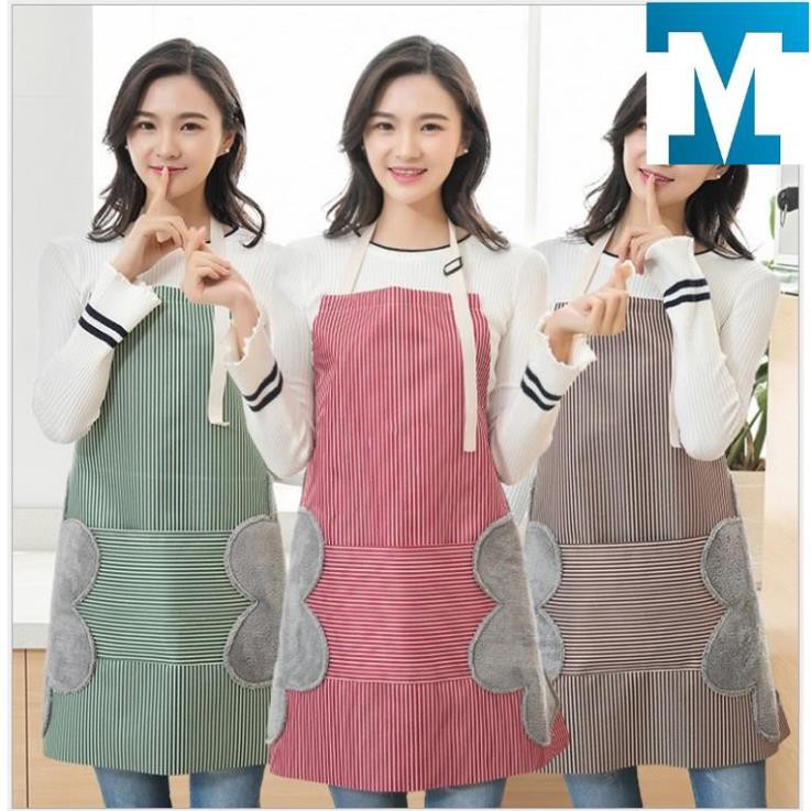 Giới thiệu [Free Ship] Tạp dề kẻ hoa có khăn lau tay bên hông, tạp dề chống thấm nước