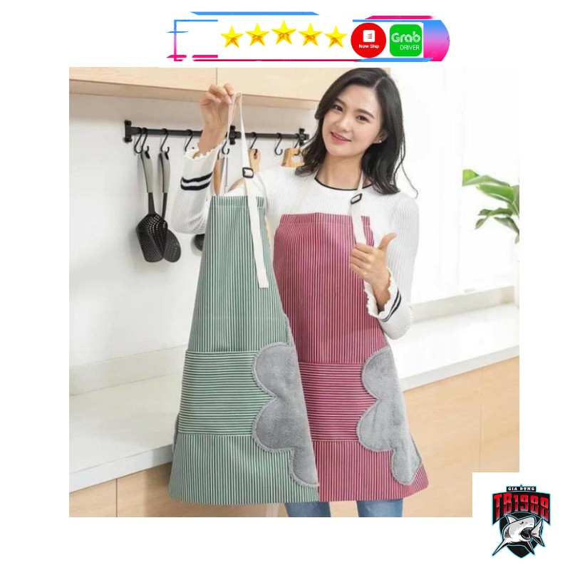 Giới thiệu [Free Ship] Tạp dề kẻ hoa có khăn lau tay bên hông, tạp dề chống thấm nước