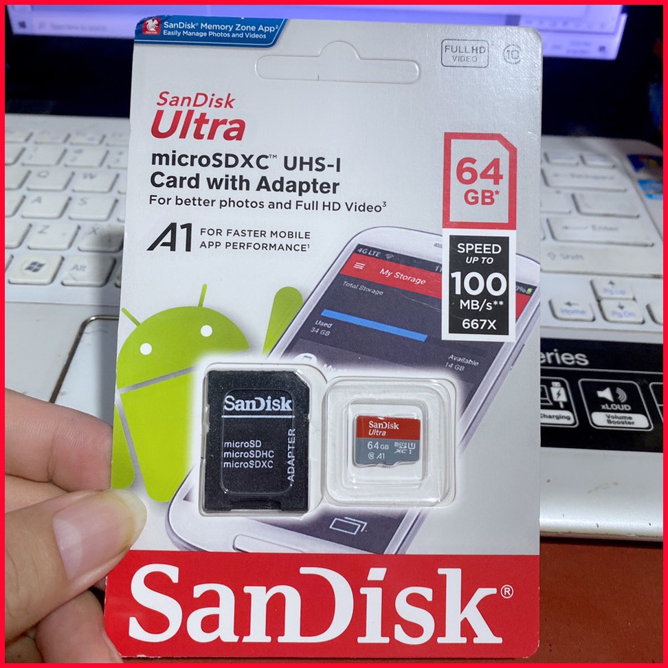 Giới thiệu Free ship Thẻ nhớ MicroSDHC 32GB SanDisk Ultra Class 10 667x 100MB/s Bảo hành 12 Tháng