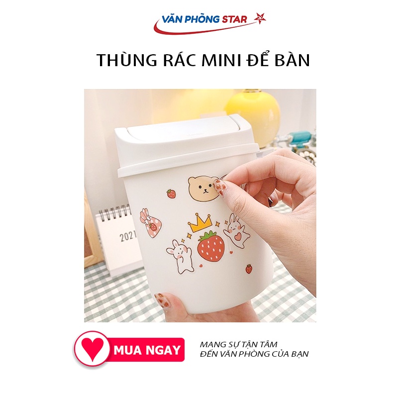 [FREE SHIP] Thùng rác nắp lật bằng nhựa dùng cho văn phòng mini chất lượng cao để bàn tiện lợi trang trí decor dễ thương