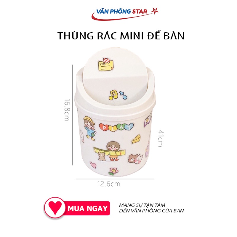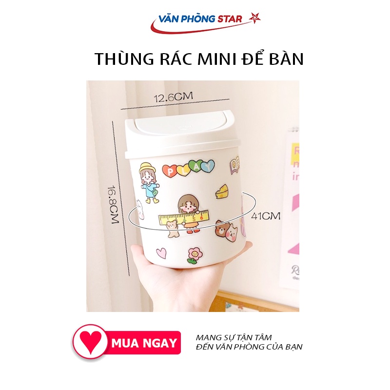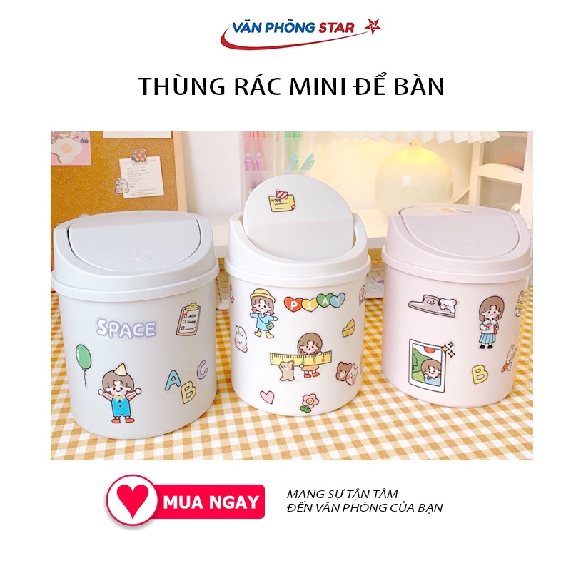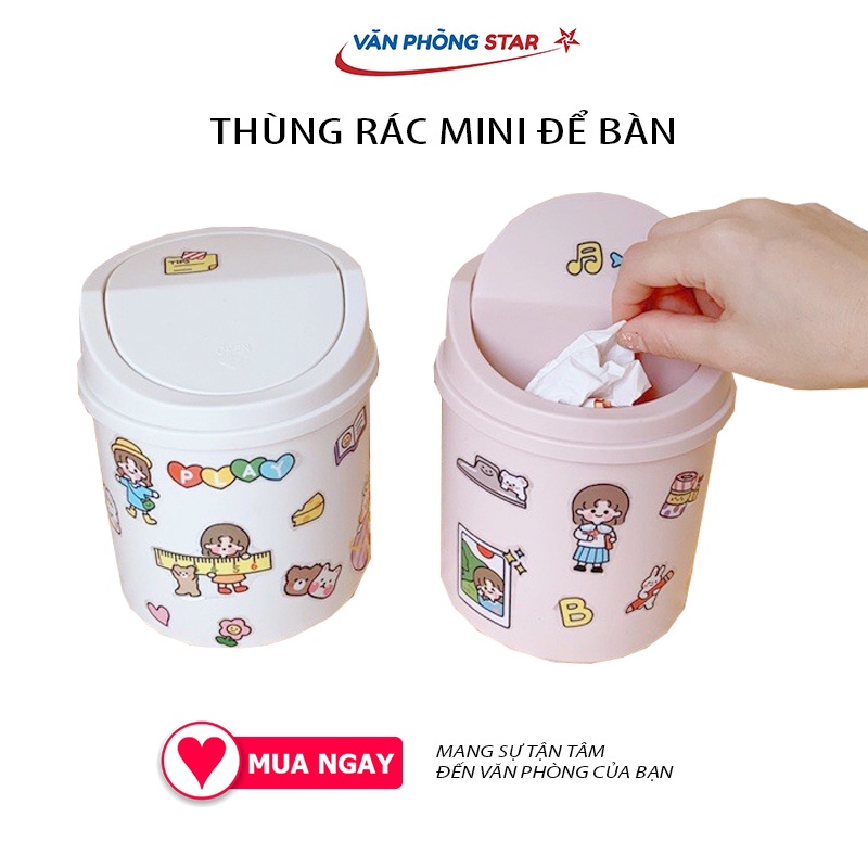 🔹 THÙNG RÁC NHỰA NẮP LẬT MINI ĐỂ BÀN DECOR DỄ THƯƠNG ( tặng kèm sticker)