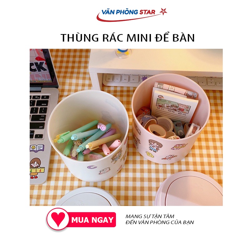 Nhà cửa & Đời sống > Dụng cụ chăm sóc nhà cửa > Thùng rác || [FREE SHIP] Thùng rác nắp lật bằng nhựa dùng cho văn phòng mini chất lượng cao để bàn tiện lợi trang trí decor dễ thươngCòn hàng