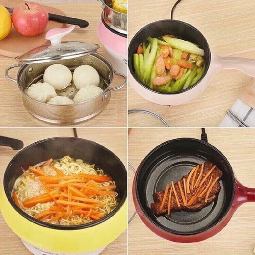 Giới thiệu [FREE SHIP-XẢ KHO] Nồi lẩu điện mini 2 tầng đa năng chống dính 18cm Tặng xửng hấp, Ca nấu mì nấu lẩu
