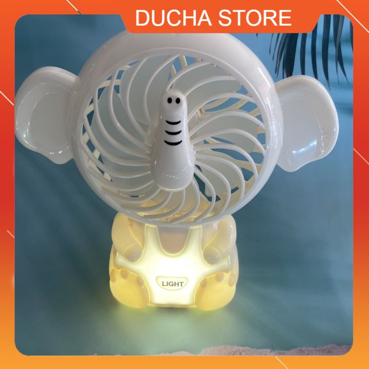 Giới thiệu Free shipQuạt mini cầm tay Hình thú dễ thương pin sạc ,Có đế để bàn kèm đèn ngủ