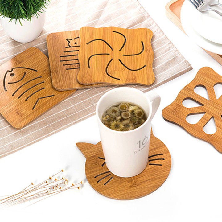 Đế lót nồi vốn là vật dụng không thể thiếu của các chị em trong gian bếp. Đế lót nồi bằng gỗ tiện dụng bền chắc cho thời gian sử dụng lâu dài. Bạn có thể dùng rế lót nồi cơm, canh, kho… để không bị bỏng tay khi bưng nồi từ bếp đến bàn ăn.Với kích thước vuông, gọn, được khắc các họa tiết ngộ nghĩnh đẹp mắt, đế lót nồi bằng gỗ cũng là 1 vật dụng trang trí giúp cho bàn ăn của gia đình bạn thêm sinh động và lạ mắt.