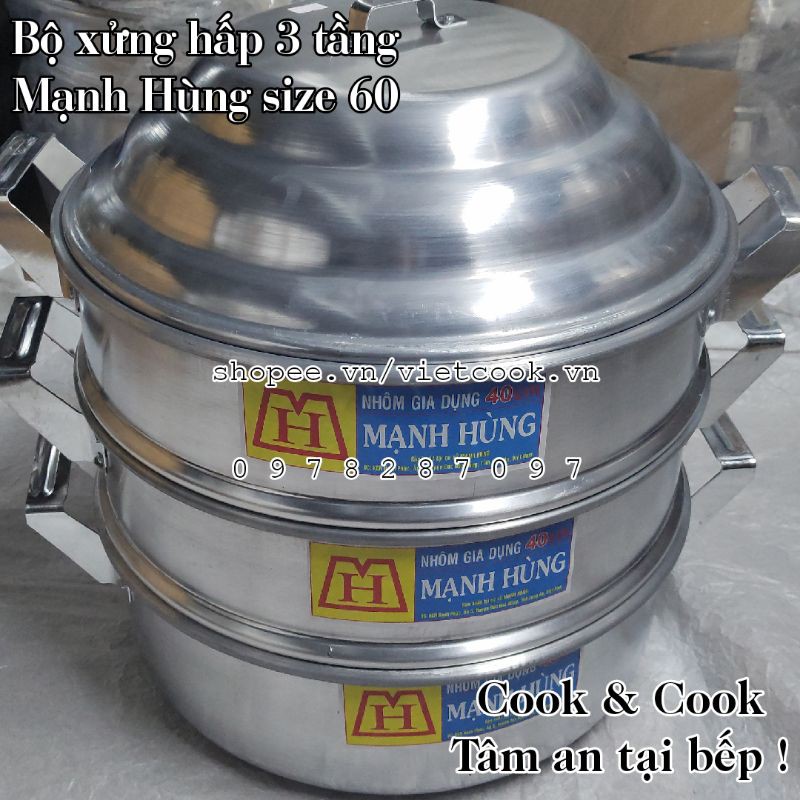 Giới thiệu [FREESHIP 0Đ TOÀN QUỐC] Bộ xửng hấp 3 tầng size 60 nhôm Mạnh Hùng chuyên Hấp bánh bao/ hải sản/ thực phẩm