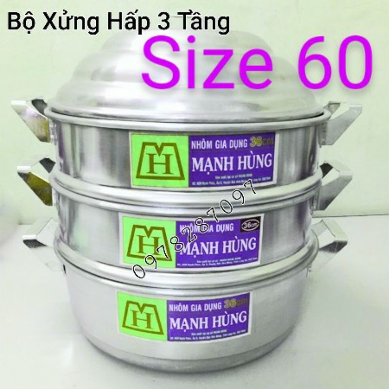 [FREESHIP 0Đ TOÀN QUỐC] Bộ xửng hấp 3 tầng size 60 nhôm Mạnh Hùng chuyên Hấp bánh bao/ hải sản/ thực phẩm