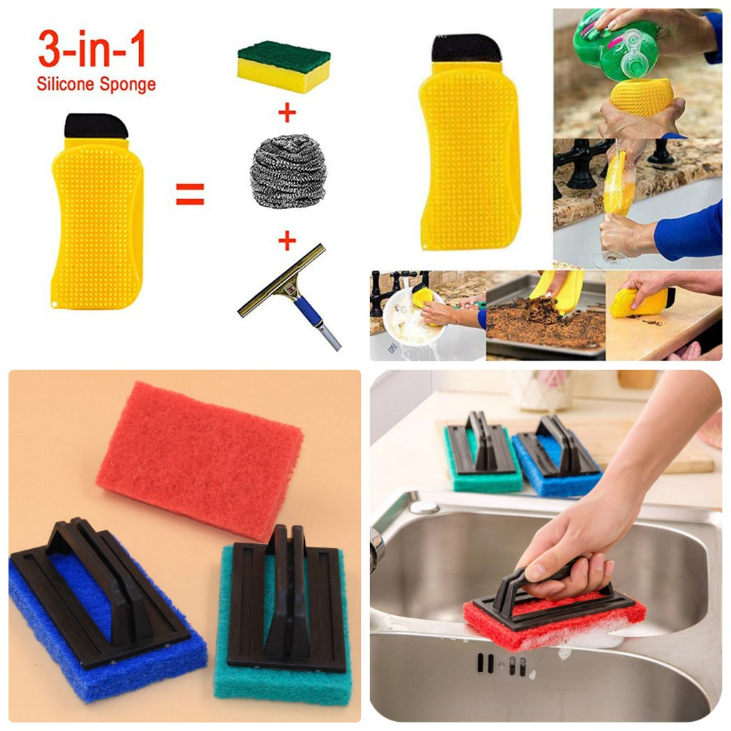 Nhà cửa & Đời sống > Dụng cụ chăm sóc nhà cửa > Miếng bọt biển, miếng chà vệ sinh || [FREESHIP-150K] MIẾNG LAU CHÙI NHÀ BẾP 3IN1 - MIẾNG NHÁM CÓ TAY CẦM BA1Còn hàng