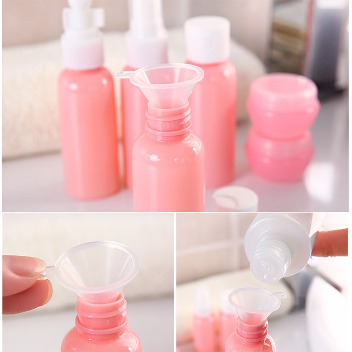 Bộ chiết mỹ phẩm - 6 món gồm 4 chai 2 hũ kèm theo đầy đủ phụ kiện tách chiết, giúp bạn mang theo một lượng mỹ phẩm vừa đủ để sử dụng trong các chuyến đi thay vì phải mang cả bộ mỹ phẩm lớn chiếm chỗ không cần thiết.ĐẶC ĐIỂM SẢN PHẨM: