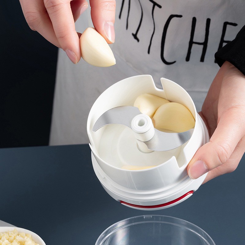 Dụng cụ xay tỏi, ớt, rau, củ quả đa năng giúp chị em xay tỏi, ớt, rau, củ, quả, thịt, cá một cách dễ dàng nhang chóng để chế biến những món ăn ngon cho cả nhà. Đặc biệt với gia đình có con nhỏ đang ăn dặm thì dụng cụ này vô cùng hữu ích để các mẹ nghiền thức ăn cho bé yêu đang tập ănMáy gồm 2 lưỡi cắt sắc bén để bạn cắt, nghiền rau củ nhanh và hiệu quả hơn