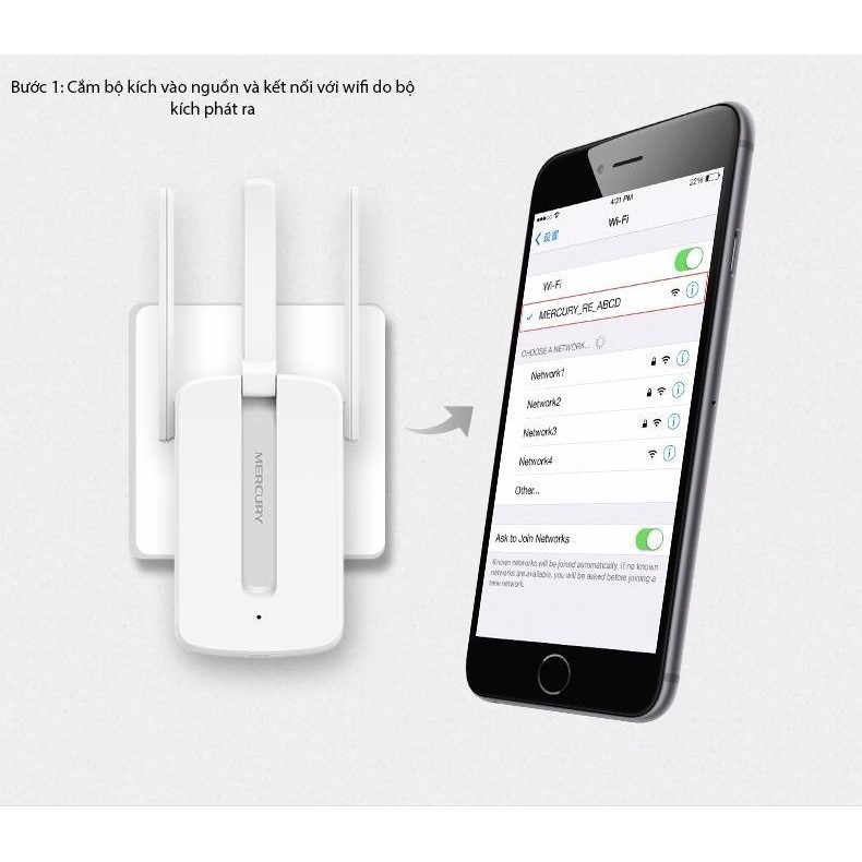 Bộ kích sóng Wifi Mercury là 1 thiết bị cực kỳ hữu ích, chúng ta có thể dùng để tiếp sóng 1 wifi sẵn có để phủ rộng hơn vùng sử dụng wifi trong gia đình. Với thiết kế nhỏ gọnBộ siêu Kích sóng wifi lên đến 300M