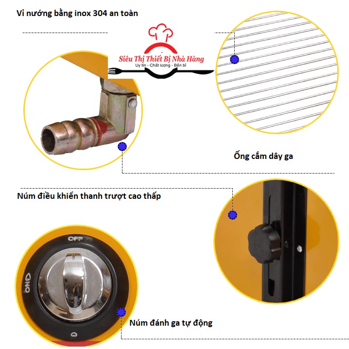 sử dụng bếp nướng 6 đầu đốt mang các thao tác đơn giản như sau: