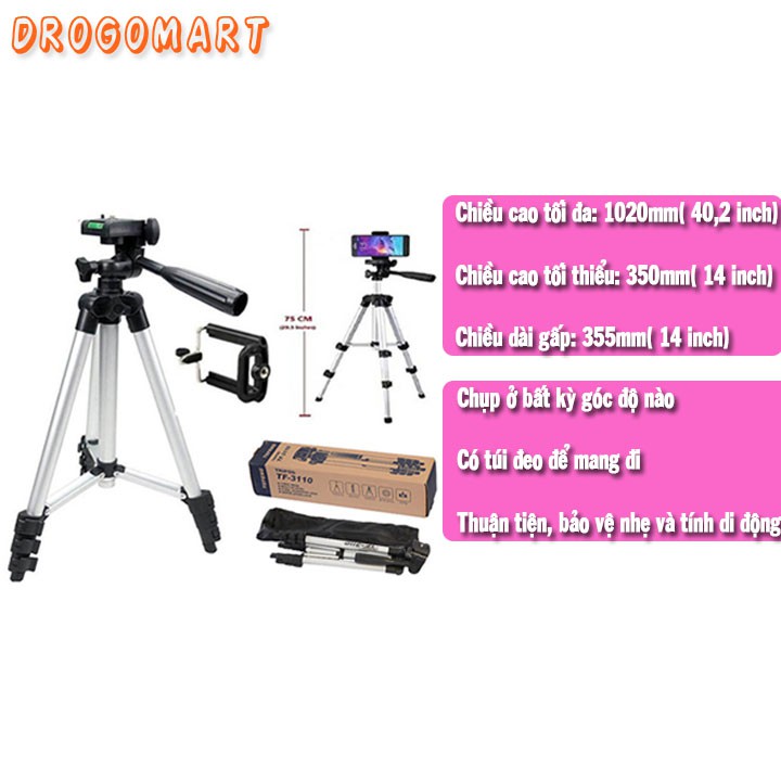 Giới thiệu ( FREESHIP 99K ) Bộ Tripod TF-3110 Chân chụp hình máy ảnh, điện thoại Tặng remote chụp ảnh + đầu kẹp