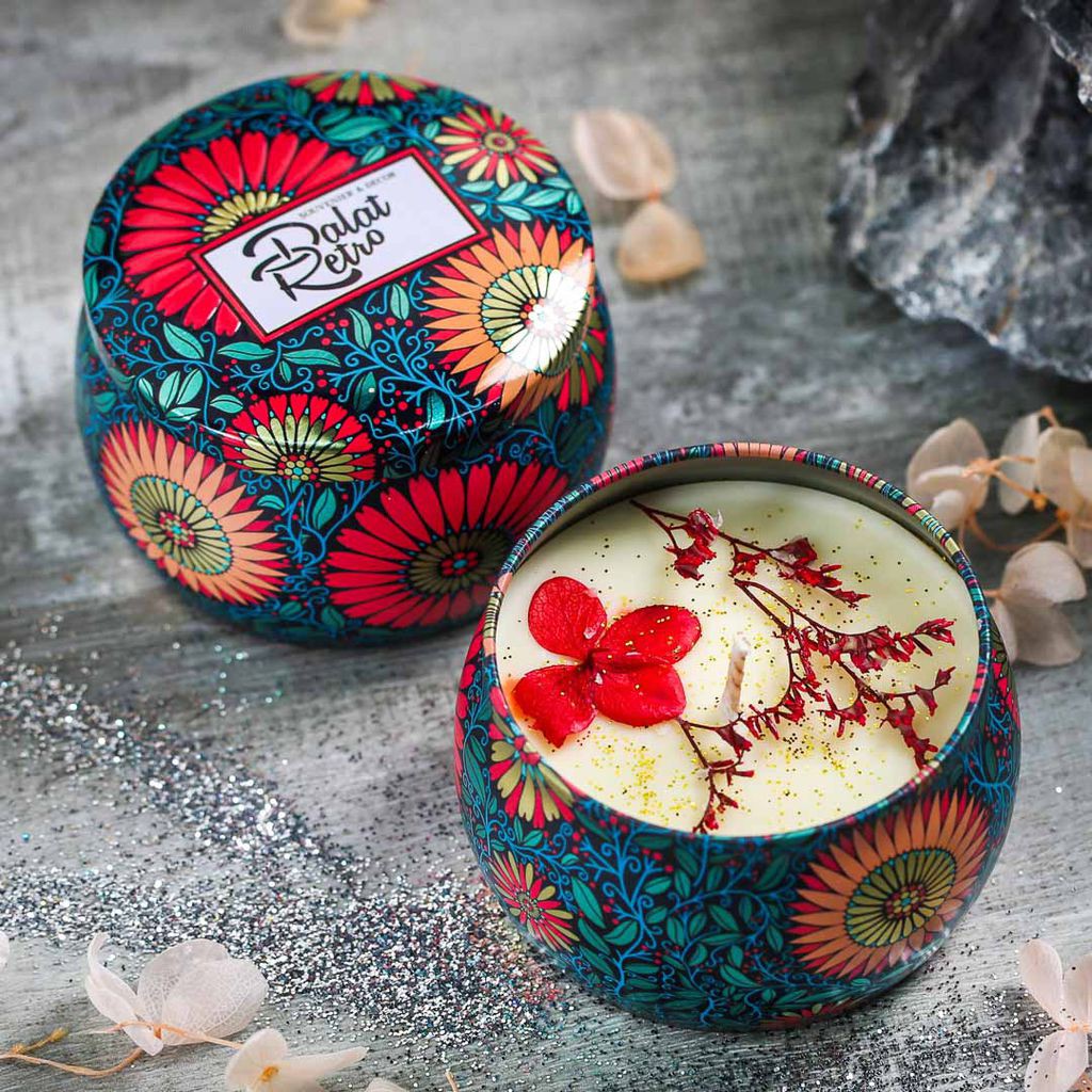 [Freeship 99k] Hộp Nến Thơm Hoa Khô Thiên Nhiên - Hộp Thiếc hoa văn