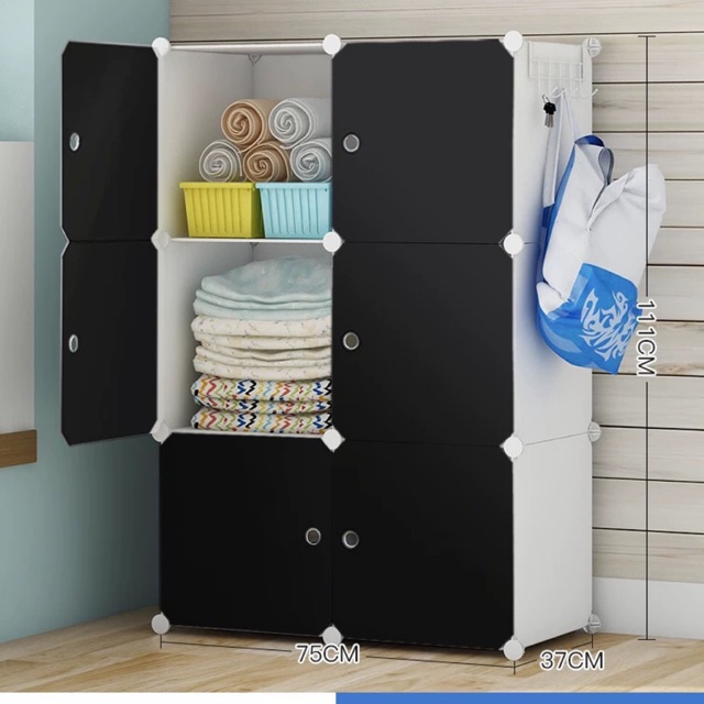 ☘️TỦ đựng quần áo 6 ô lắp hoàn thiện: cao 110cm x rộng 75cm x sâu 37cm.