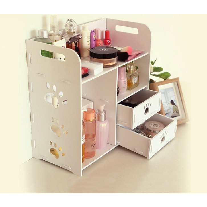 – Kệ đa năng đựng mỹ phẩm và đựng đồ 2 ngăn kéo được cấu tạo từ các miếng gỗ được liên kết với nhau một cách thông minh & chắc chắn, có thể tháo rời khi không sử dụng đến cực kỳ tiết kiệm diện tích & tiện lợi khi mang đi xa.