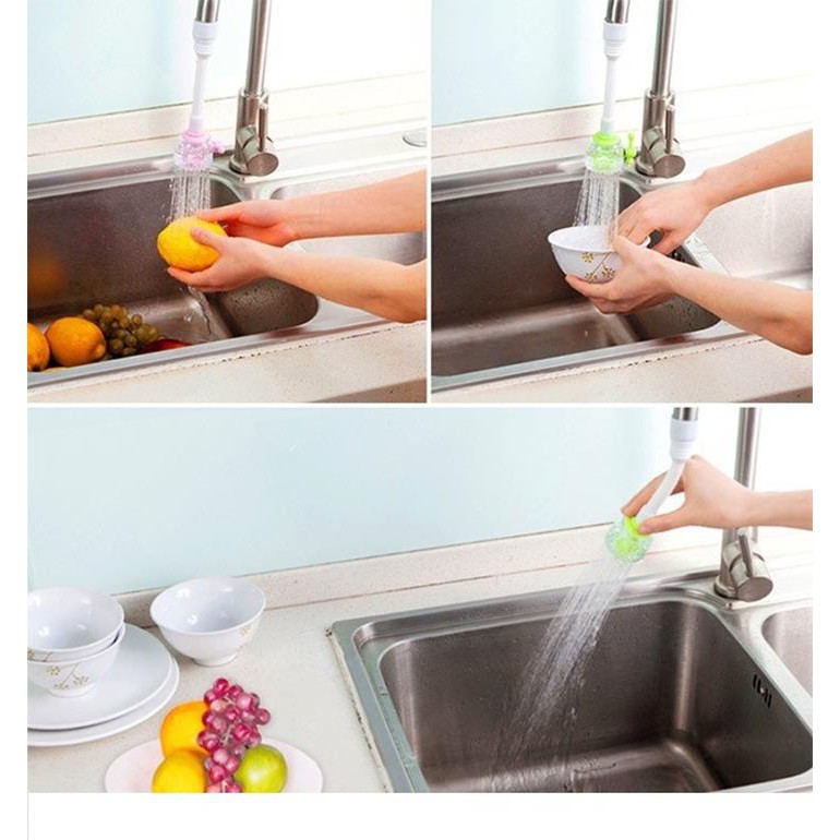 - Vòi nước trong suốt xoay 360 độ là vật dụng dùng kèm hỗ trợ cho vòi nước nhà bạn với thiết kế nhiều lỗ nhỏ dạng vòi sen phun nước giúp bạn rửa thức ăn, đồ dùng sạch hơn và tiết kiệm lượng nước sử dụng hơn.