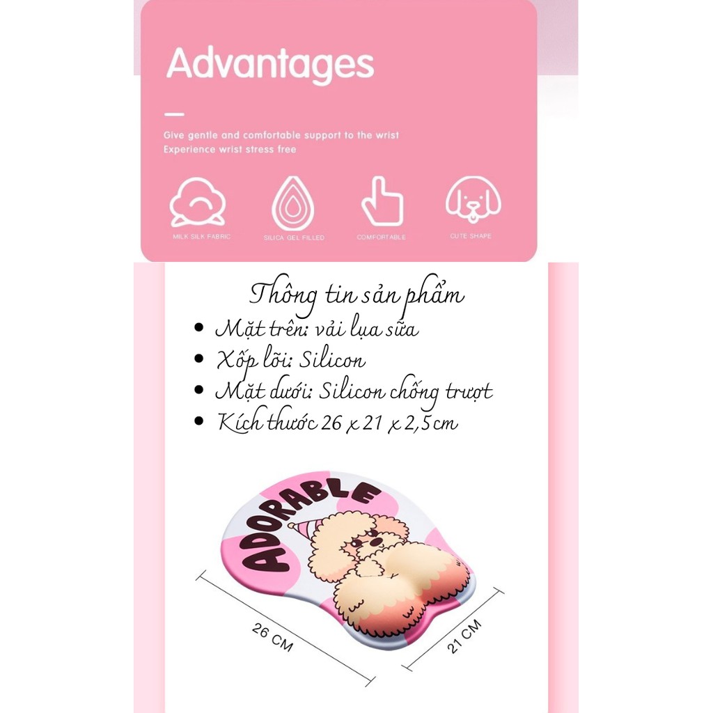 ⚡ FREESHIP⚡ Bàn di chuột có đệm đỡ cổ tay, miếng lót chuột dễ thương, tấm lót chuột hình cún cute, tấm lót chuột 3D