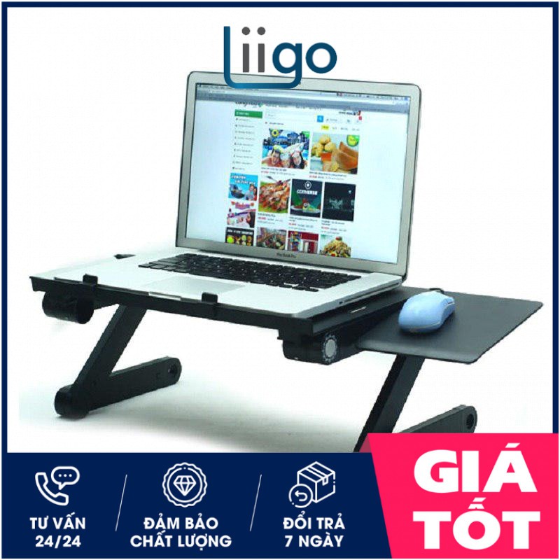 Bàn gấp để laptop tùy chỉnh 360 độ T8 siêu tiện dụng có quạt tản nhiệt