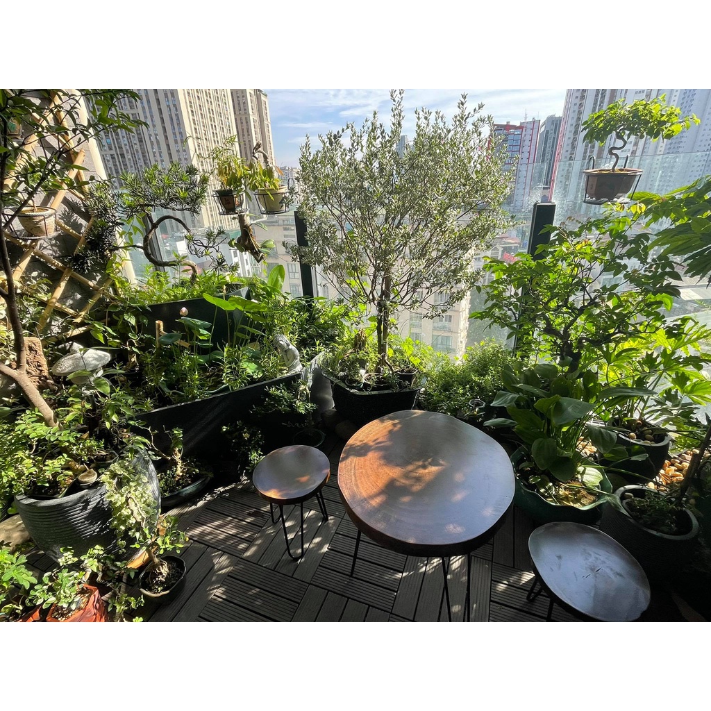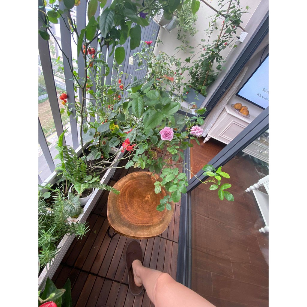 Nhà cửa & Đời sống > Nội thất > Bàn || [FreeShip] Bàn Ghế cà phê gỗ xà cừ nguyên tấm D = 41cm - 45cm x Cao 40cm HP decorCòn hàng