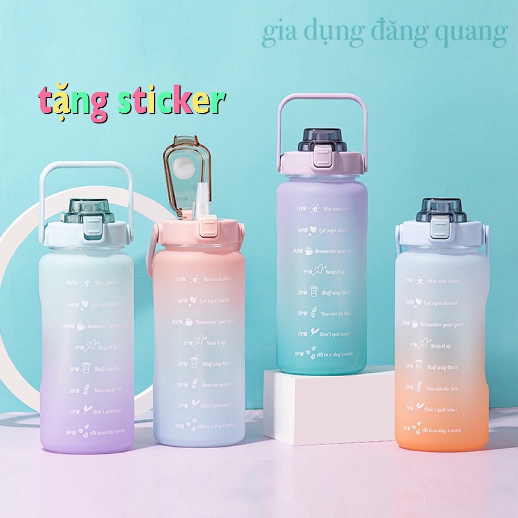 Nhà cửa & Đời sống > Bộ đồ bàn ăn > Bình nước & phụ kiện || [ freeship ] Bình Đựng Nước 2 Lít Dễ Thương Tặng Kèm Sticker - Bình Nước 2L Dành Cho Người Lười Uống Nước -Tập GymCòn hàng