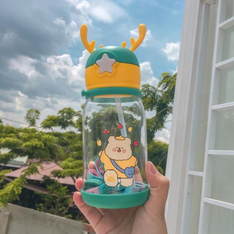 ✅FREESHIP✅ Bình nước ngôi sao có sừng hình gấu kèm ống hút