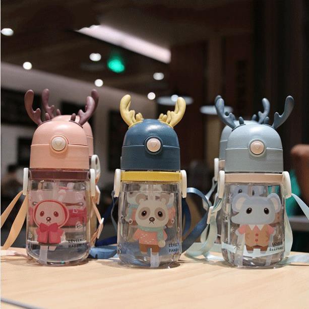 Bình uống nước họa tiết sừng huơu có quai đeo đi kèm vô cùng xinh xắn cho bé