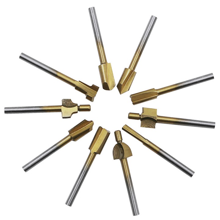 _ Bộ sản phẩm gồm 10 mũi phay với hình dạng khác nhau