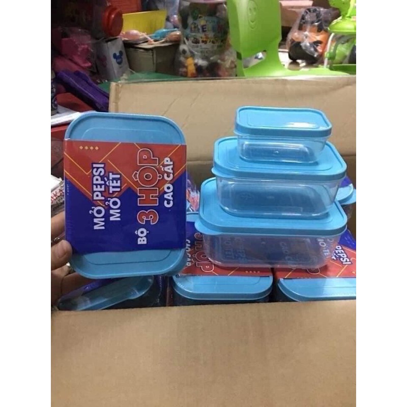 ❗❗Bộ 3 hộp nhựa Pepsi - đựng thức ăn, trái cây, đựng cơm mang đi học đi làm rất an toàn ạ💕⛔sản phẩm của nhựa Tứ Hưng
