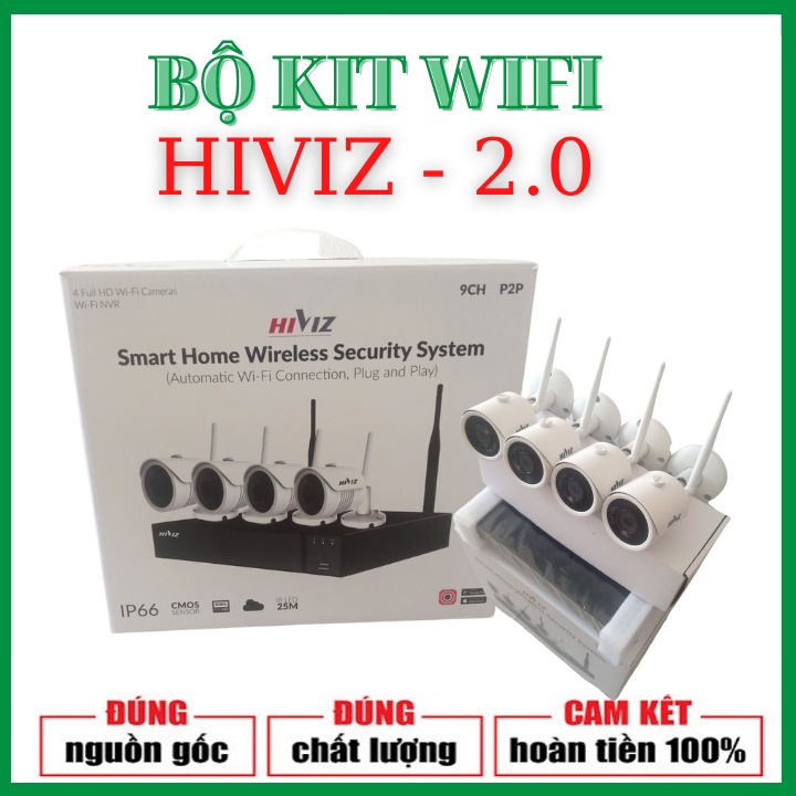 Giới thiệu ⚡️FREESHIP⚡️Bộ camera giám sát không dây hiviz 2.0MPX, 4 camera trụ kim loại, kèm đủ phụ kiện lắp đặt - hàng chính hãng