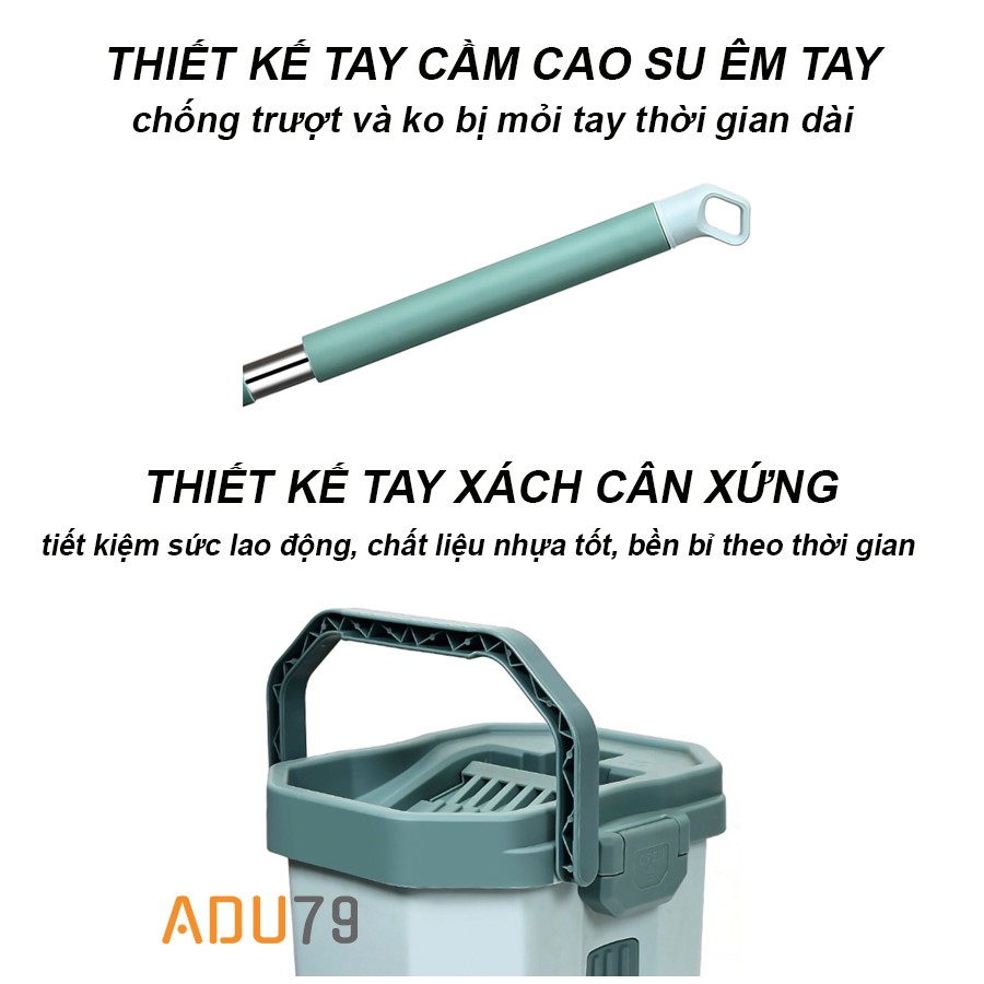 - Thùng nhựa và bàn lau bằng nhựa ABS chắc chắn, dùng bền lâu, không dễ nứt vỡ như các loại nhựa tái sinh rẻ tiền