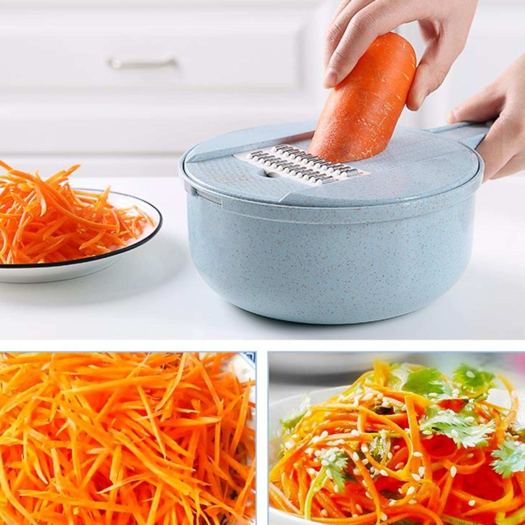 🍀Bộ sản phẩm bao gồm: 1 thau, rổ, giá mài nhuyễn kèm khoang tách trứng, giá gắn dao bào kèm 4 kiểu lưỡi bào, bảo vệ tay (ấn lên rau củ khi bào)
