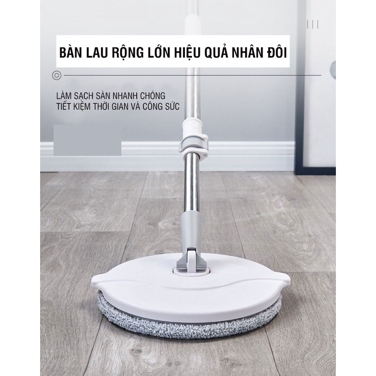 + Cây lau chất liệu inox không gỉ, kích thước dài từ 110-135cm, bàn lau hình tròn