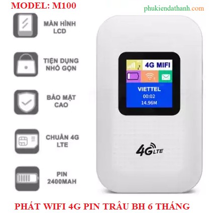 Lưu ý: Logo trên phát wifi là logo nhà mạng phân phối sản phẩm, có thể sẽ thay đổi tùy đợt hàng (4G LTE , YCT, ...)