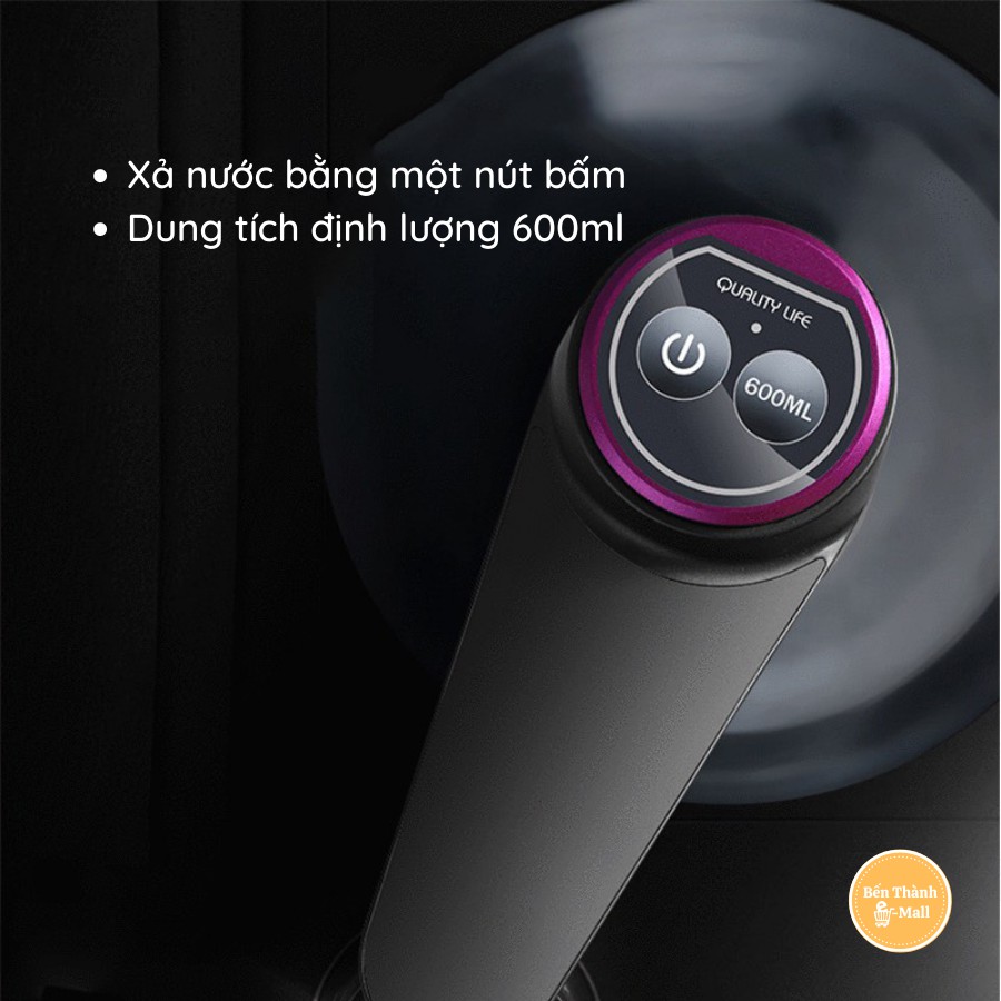 - Sạc USB, tích hợp pin 1200mAh, đầu ra nước một nút và đầu ra nước định lượng 600ml