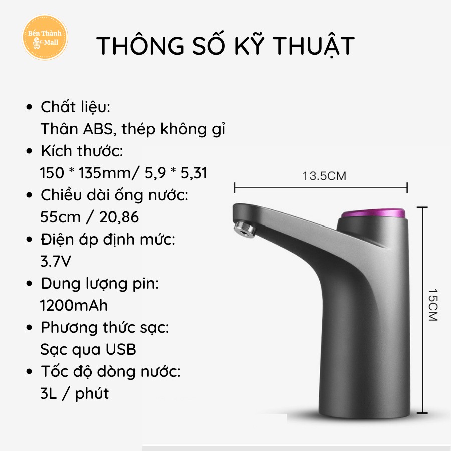 - Một lần sạc đầy, đủ để bơm 5-10 bình nước